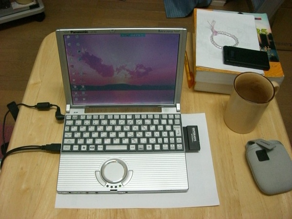 週六在秋葉原集合時, B大叔說"我有把我的小電腦帶來, 不過妳不一定要跟我買. 我希望妳等下在店裡自己也比較看看, 說不定妳會找到更中意的" B大叔帶來的是電腦是Panasonic CF-R2, 算是4年前的機種了. CPU 是Celeron 600M, RAM是512, HD才20G. 電池快廢了, 但有電源線還算OK......規格比起現在的電腦來說是有點遜, 但以我下班後一個普通使用者的角度來看, 可以了. 反正我自己有120G的攜帶式硬碟, 缺office 軟體的話可以自己灌. 重要是它體積比A4紙小, 加上電池才1公斤輕盈方便, 比買4G的Eee PC要划算.