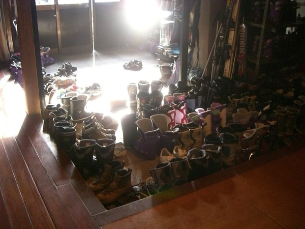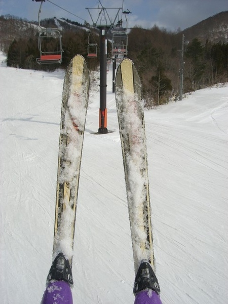 小寐一下, 大約9:00離開旅館前往滑雪場. 這裡可以租ski board 或 snowboard, 一天500yen, 有人第二天要去市區觀光, 我則是覺得"難得來, 還是2天都來滑雪吧"...... 於是花了1000yen 租了器具. 另外, 滑雪裝也是一天500yen, 所以我連租2 天. 手套租一次是500yen. 所以什麼都沒帶也沒關係, 因為跟旅館租, 2500yen/ 2天 就搞定了.