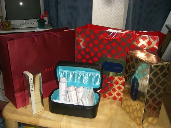 所以, 找了一個週末我去了Sogo, 晃了一圈後發現有位雅詩蘭黛專櫃小姐的妝比較自然好看, 於是趨前請她幫我化化看...半小時後, 完成了, 大概是不習慣, 覺得自己看起來一點也沒有變美或變可愛. 又"不好意思"就這麼走了, 所以跟專櫃小姐買了剛剛她幫我化的那套彩妝組.