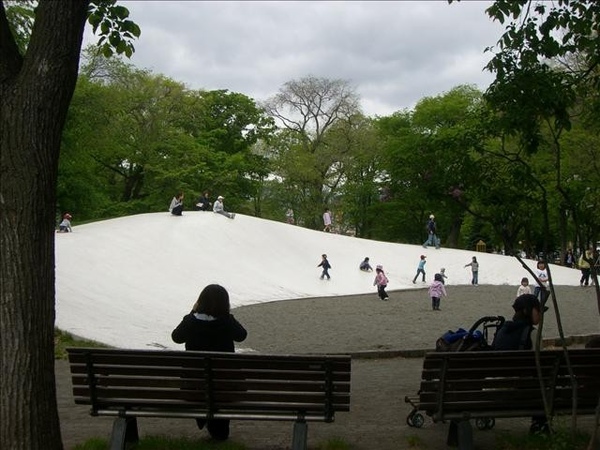 午餐後,在暖暖的陽光下,靠在大通公園的涼椅上小睡了一番。只有一個爽字可以形容! 離開後,我決定隨便騎,遇到紅燈就轉彎。反正札幌市區是很整齊的棋盤格,不怕繞不回來。
