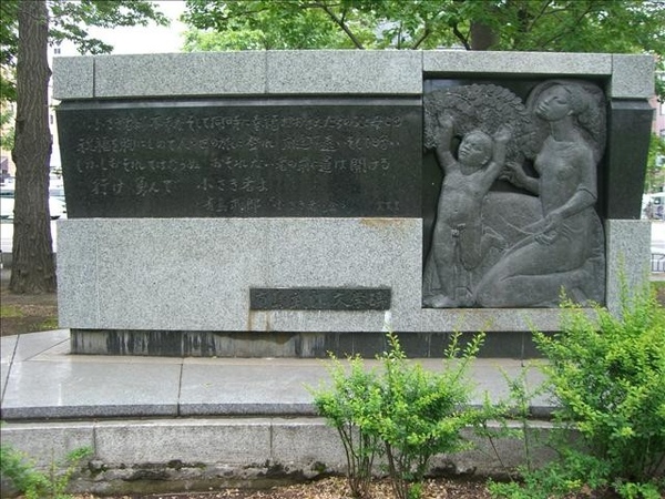 這是公園裡的有島武郎文學碑。勇敢向前吧!小小勇者們!