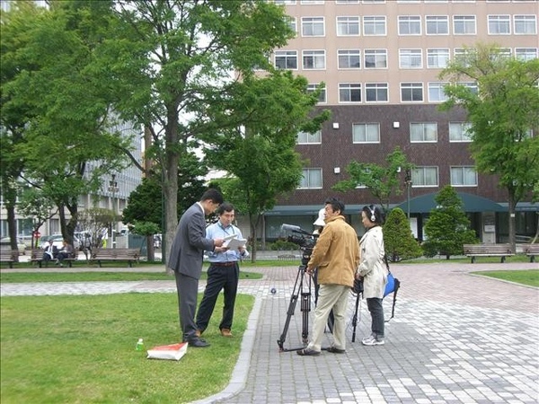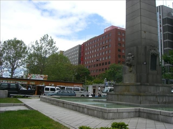 今天單騎走天涯的首要目的就是大通公園...第一天講過,大通公園是一個長條狀、延綿數blocks的公園。(所以我才沒這麼勤奮用走的) 我剛剛數了一下,從東邊的TV Tower 一直到西邊的札幌市資料館一共有12個”補辣可”。