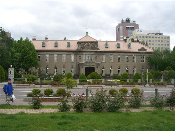 這是大通公園西邊的盡頭,札幌市資料館。特別一提的是,這個藍衣小男孩超有禮貌,看到我在拍照,馬上停下來等我。未來的少女殺手,加分加分!