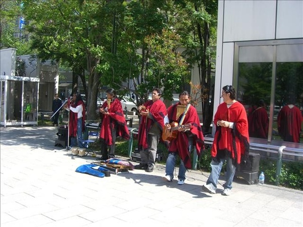 公園裡表演民族音樂的人。輪廓看來像是阿豆啊而不是原住民。附近還有三個在草地上練習甩酒瓶的男生,不過我只有動畫沒拍照片。