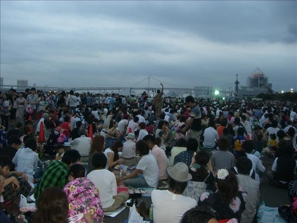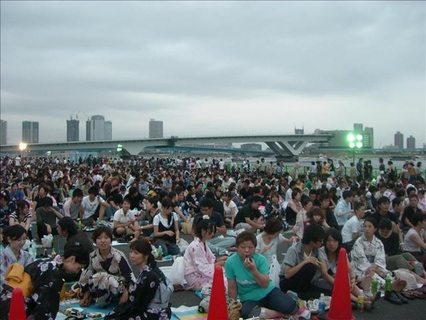前前一晚才看過北京奧運的開幕式,想到那壯觀的煙火,應該短期內沒人能跟它比了吧。所以雖然是第一次在東京看煙火,並沒有什麼期待的心情。
