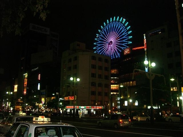 吃完拉麵, 心滿意足的回hotel. 發現夜裡的摩天輪煞是好看.